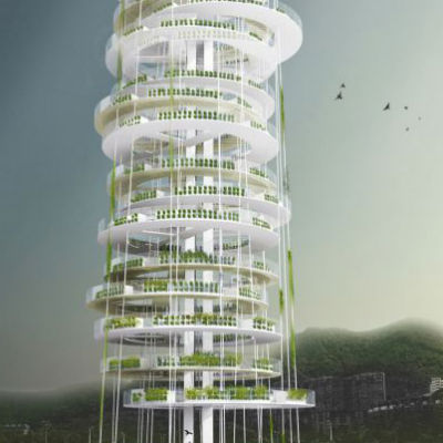 Javier Ponce Architects’ (JAPA Architects) proposal for rice farming skyscrapers in Hong Kong creates a new opportunity for sustainable design, and won a citation from the FuturArc Prize 2013 eco-architecture design competition. The Dynamic Vertical Networks, or Dyv-net towers, are designed for farming nearer to cities. The towers will use hydroponics to grow plants with very little to no soil and employs green building technologies.