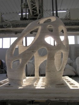 As the technology further develops not only will the shapes that can be created have little limits, but so may the materials that can be printed. Enrico Dini of Monolite, UK, uses a mixture of sand and binders to create a stone like material, as can be seen in the picture above. His company is now working with renowned British architecture firm Foster and Partners and a documentary of his journey to develop this product has been made.