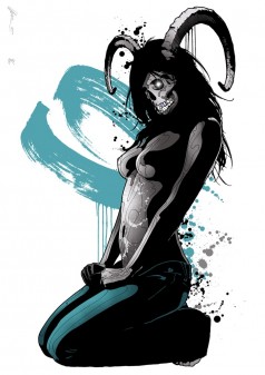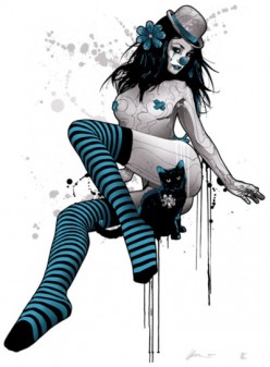His latest exhibition “Clowns and Calligraphy” is a testament to Mitchy Bwoy’s northern charm and facetious sense of humor. When asked about his fascination with clown girls Mitchy replied, “My interest is in the sexy and sinister aspect. As with other pieces in the show Love + Hate and Nowhere Girl, it’s about opposing aspects of human nature – yin & yang, Jedi & Sith, etc.” He chuckles, “They’re just a bit of fun really … I guess I’ve always had a thing for striped stockings!