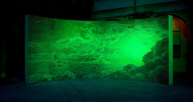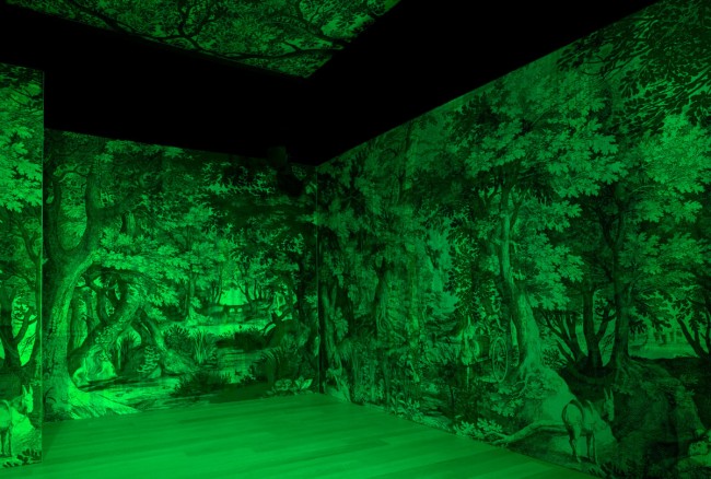 Ok, we’re not really ready to stop talking about installations at Milan Design Week 2013. Milan design studio Carnovsky and Italian graphics and printing company Graphic Report collaborated to create The RGB Fabulous Landscapes installation at the Fondazione Adolfo Pini in Milan this month. The installation included wallpapers that change images depending on the color of the LEDs lighting them.