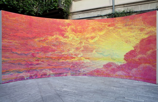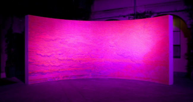 At the exterior space of the studio Atmospheric N.1. Sunrise, sun set, and storm are revealed as the light changes