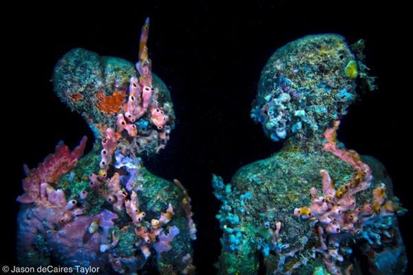 The beauty of placing human creations underwater is that we see an evolution occur as everything merges with nature, until its original form is almost indistinguishable. At night we can behold the true colorful vibrance of this natural art.