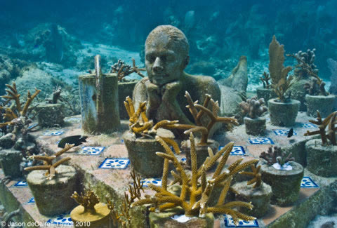 Imagine swimming in the open ocean, turquoise-blue waters and discovering an underwater land of mystical people from another time. A lone piano collects sea-dust and a young girl contemplates her coral garden. If you travel far enough you will meet The Dream Collector – only hope your subconscious has a gift worthy enough to offer. This place is real and can be found if you dive into the waters of Isla Mujeres and Punta Nizuc of Cancun, Mexico.