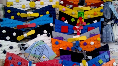 As a visual artist she is drawn to using found and recycled items, though she explains this is part of the challenge – Lego doesn’t make these unique colors anymore and she has to search hard for them in second-hand sales and vintage stores. Besides legos she also works with 45’s, cassettes, turntables, doors, glass and much more treasure that is now “formerly known as someone else’s trash”. With each piece of work she creates, Wonder LEE aims to inspire positive social conscience and encourages all to “use what they have”.