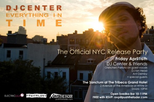 by: StonePosted on: April 15, 2010 APPROVED EVENT: DJ Center – Everything in Time Release Party This should be a real good look. I’ll be in the building and my homie Ant will be on the 1s and 2s!
