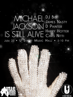 Join True Genius Requires Insanity alongside Delaware’s DJ Bis, Baltimore’s James Nasty, and DC’s Harry Hotter, D Painter and Chris Nitti for a special happy hour event paying tribute to a man who made life through music. We will celebrate Michael Jackson from 5-10 PM at the only place we know truly capable of presenting the voluminous beauty and everlasting soul of his music in the best light, U Street Music Hall. The event will be free, and we welcome literally everyone to come and enjoy music by, regarding, inspired by or sampling the King of Pop, and maybe even with his music making him an everlasting presence of supreme musicality, the King of Music itself.