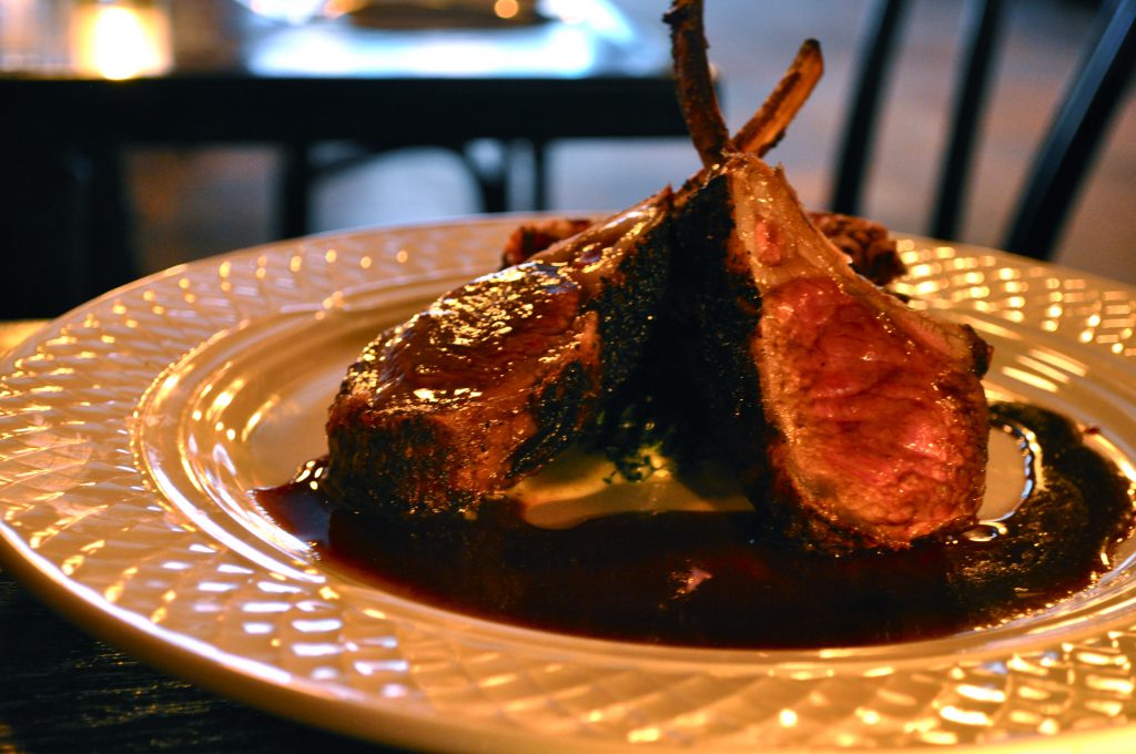 Then – entrees! You can judge a lot about a restaurant by examining its burger offering, and this one did not disappoint – the Tony Prime Burger was a towering, juicy burger, adorned with various cheeses, crispy shallots, and creamed spinach, plus a small bucket of skinny fries on the side. As if we needed more meat, we also tried the seared lamb chops, served with creamed spinach, a slice of bacon-apple potato cake, and pomegranate glaze.