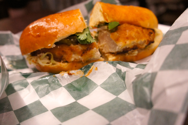 On top of a buttery brioche bun was a juicy piece of fried chicken, pickled veggies, and liver mousse. Although I wish the chicken’s skin was a bit crunchier to counter the buttery soft bun and pate and it was served on a baguette, the sandwich had decent flavor. And it came in this nifty Lunchbox to-go container so I could overload not only on carbs but also some vitamin D.