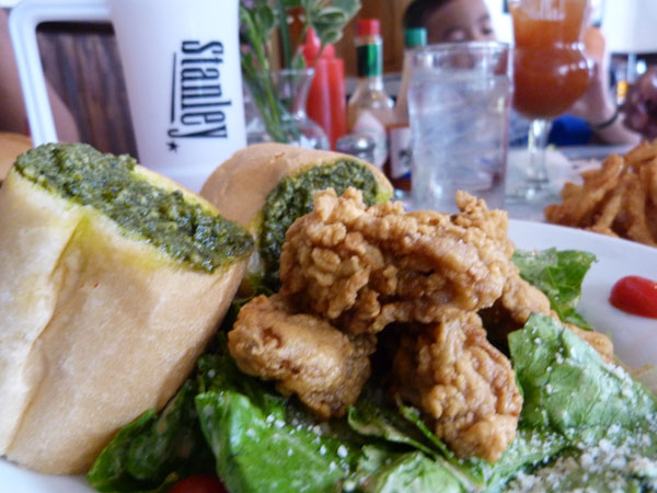 Then for brunch, we went to Stanley. I was feeling fat from eating breakfast 20 minutes prior, so I just ordered a light meal of Hearts of Romaine Salad with Toasted Pesto Crostini, Parmesan Cheese and House Made Spicy Chipotle Caesar Dressing. I added the Cornmeal-Crusted Oysters and man! Have you ever had a food O? I had one then.