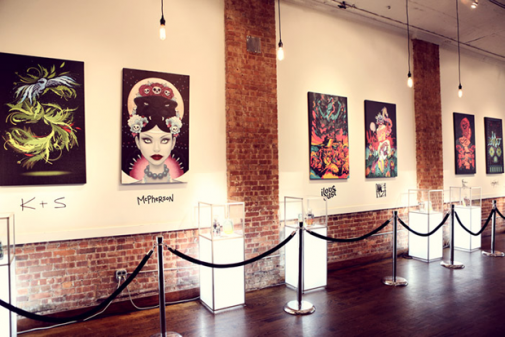 I managed to pull myself away from the happenings to interview Stephen Bliss, who’s work you may recognize if you’ve played Grand Theft Auto 3, 4, Vice City, Chinatown Wars and other games for Rockstar, or their ginormous billboards everywhere. His campaigns include clients such as Absolut Vodka, Burton Snowboards, MTV, and Pepsi to name a few. Stephen also goes by the tag Steroid, derived from a clothing company he started with his brother, for his art work, and has worked in fashion for Hysteric Glamour, and toy design for Thunderdog Studios.