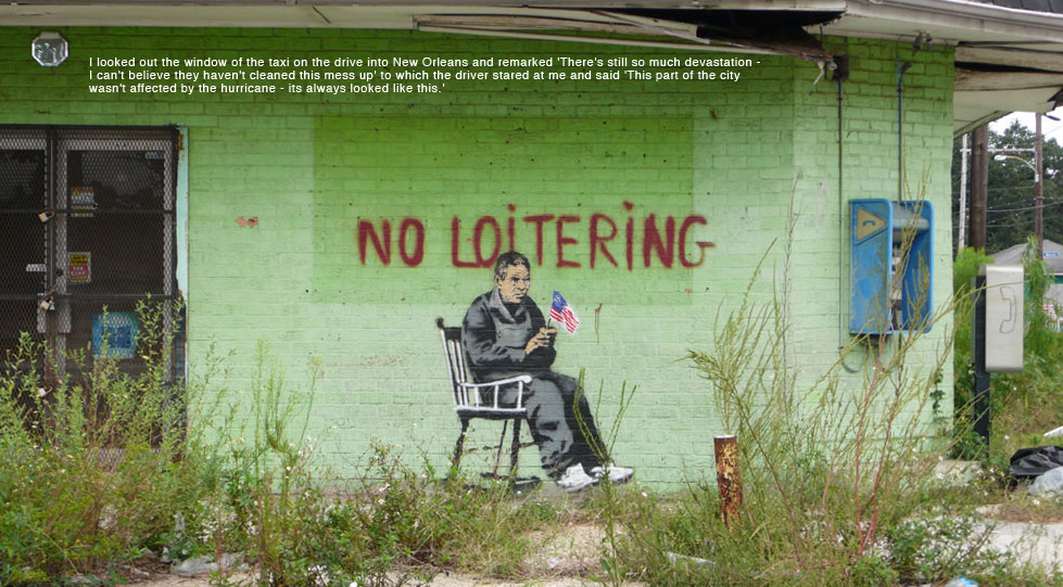 The UK stencil artist Banksy descended on New Orleans during the anniversary of Katrina (and right before Gustav struck).