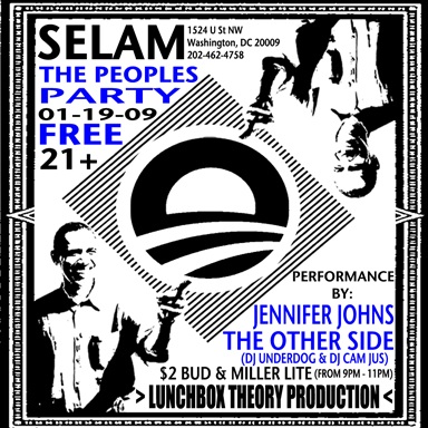 This is it. My Inaugural schedule is set in (er…) stone. These events below consist of all of the events that I will try to make it to this weekend. As you notice, most of these are a little off the beaten path, but if you want to spend this Inauguration weekend outside of those official balls and/or overpriced nightclubs, check out the following events. Also, there is a more extensive event calendar on the right sidebar AND at my new events site My DC Network (beta).
