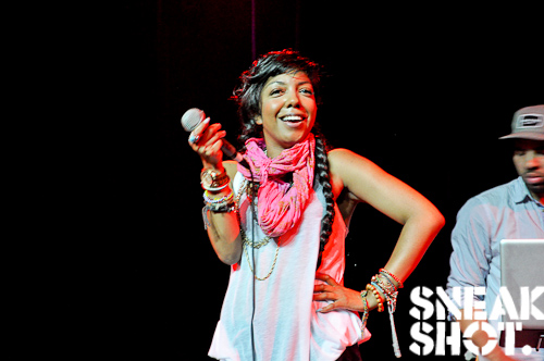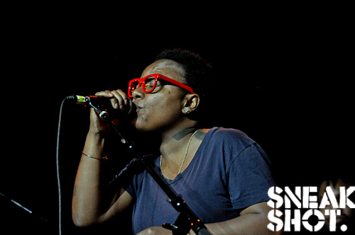 The DMV’s own Allison Carney opened the show with her sweet yet seductive concoction of hip-hop, soul, and jazz. Rocking her trademark side-swiped waist-length braided ponytail, she re-imagined hits like “Heartbeat,” “Don’t Let Go (Love),” and “It Takes Two.” Her standout originals include the beautiful ballad “Shooting Star” and “Japanese Candy,” a song about her lady bits: sweet, tasty, and hard to get.