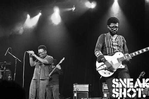 To my surprise and delight, the band pulled out The Time’s “777-9311,” which ended up out-funking the original, followed by an acoustic rendering of “I Would Die 4 U,” which Me’Shell said reminded her of Sunday school music…pause… They ended the set with a punked-out version of “Let’s Go Crazy,” which featured some of the most beautiful, erotically charged drumming that I have ever seen. The orgasmic expression on the drummer’s face, for the entire length of the performance, was priceless. The crowd indeed went crazy as the band indulged in their greatness.