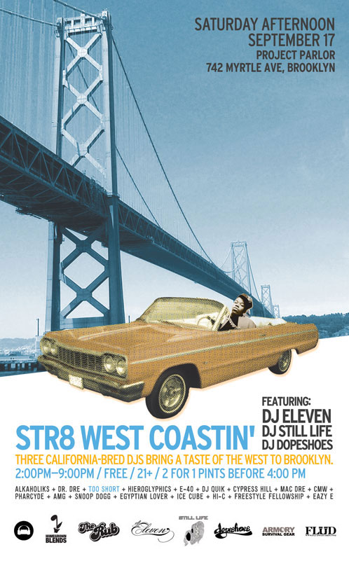 This Saturday will mark the second edition of Str8 West Coastin’. DJ Eleven, DJ Still Life and DJ Dopeshoes are steady bringing the Left Coast vibes to the heart of Brooklyn. As a prelude to Saturday’s event, the three DJs got together and create a rather ill mix of their favorite tracks from Dogg Pound to DJ Quik. Check it.