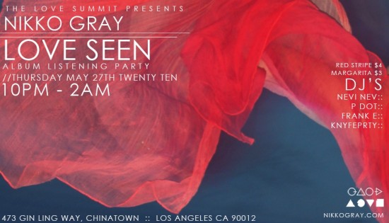 LOVE SEEN releases this Thursday via Nikko’s Bandcamp site, and if you’re in LA there will be a listening party for the album in Chinatown:
