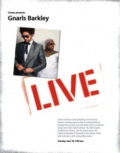 Gnarls Barkley is doing a free in-store peformance at the Apple Store at 7PM tonight.
