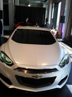 The team at Chevy’s Hollywood design studio took this data and created two new concepts based off what the kids wanted in the car, and the list is somewhat surprising–two doors, 40 mpg, a $22,000 price point and no electric or hybrid vehicles. The crowdsourced results resulted in two concepts–the Chevrolet Code 130R and Tru 140S. My eye was partial to the red Code 130R, which looked like the cross between a Mazda RX-8 and a Camaro. The general consensus in the room went toward the white “Tru 140S,” to the delight of it’s designer Nick David, whom I spoke with privately.